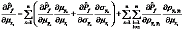 與獨立變量情況類似,變量相關(guān)情況下的可靠性試驗靈敏度定義為失效概率對基本變量分布參數(shù)的偏導(dǎo)數(shù),以